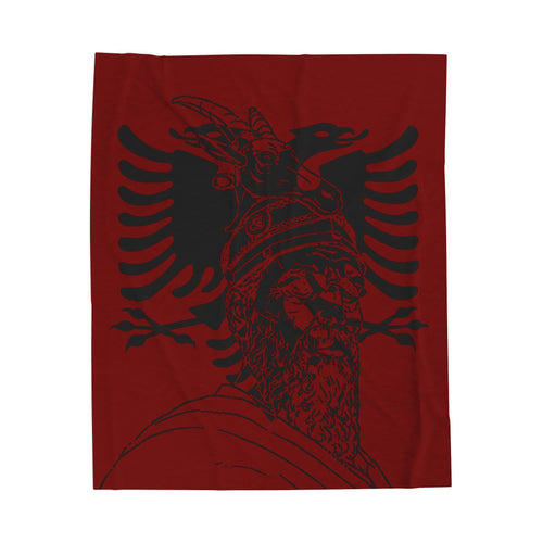Albanian Eagle Velveteen Plush Blanket – Skanderbeg Portrait Throw